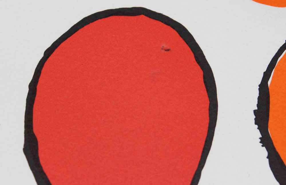 CONDITION: Minor handling creases in margins, very minor light browning along very edge in margins, depression with blemish in one of the balloons, pale stain in upper right corner