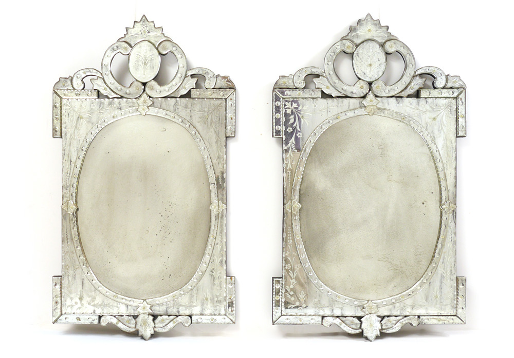 PAIR OF CONTEMPORARY VENETIAN GLASS STYLE MIRRORS: 43 1/4'' x 24''