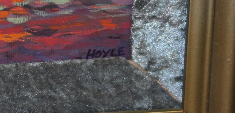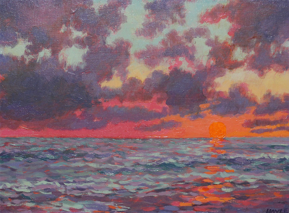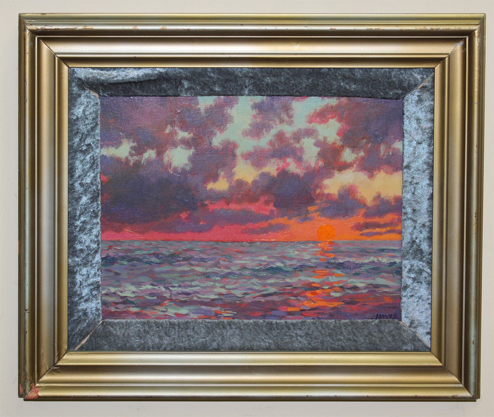HOYLE, James, (American, 20th Century): Sunset over the Ocean, Oil/Masonite, 9'' x 12'', signed lower right, signed and dated December 22, 1975 verso, framed 14 1/4'' x 17 1/2''.