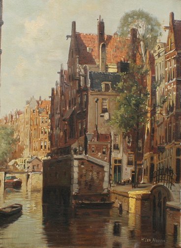 H. ten Hoven (Dutch, b. 1901): Canal Scene, Oil on canvas, signed ''H. ten Hoven'' lower right, sight size 15 5/8'' x 11 5/8'' (39.7 x 29.5 cm), framed, 22'' x 18 1/2''.