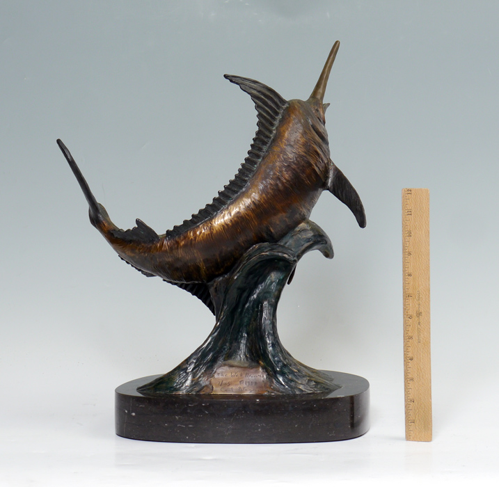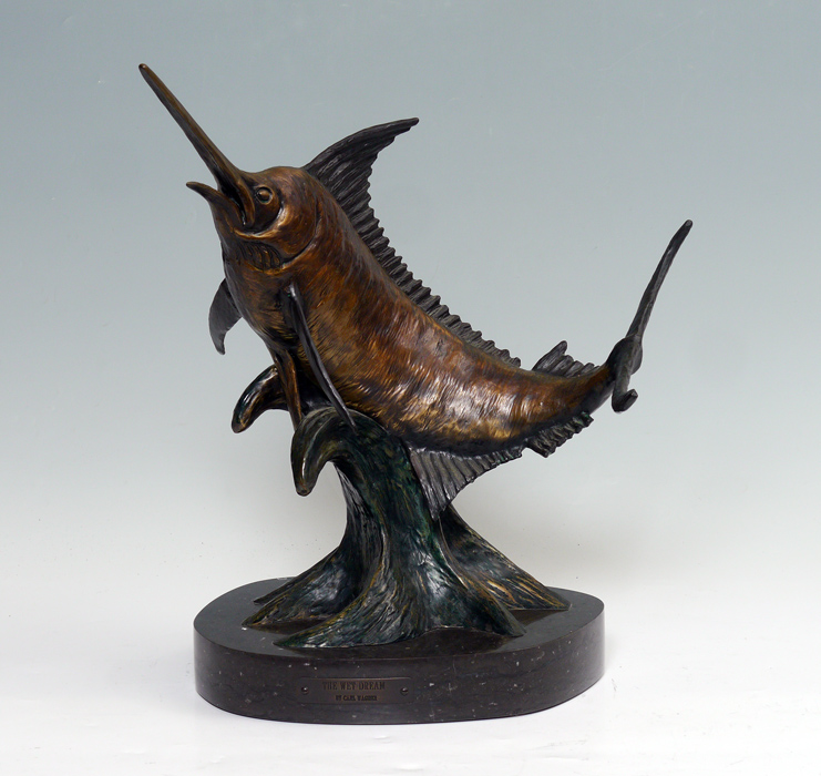 WAGNER, Carl, (American, 20th Century): ''The Wet Dream'', Bronze Marlin Sculpture, 17 1/2'' h. x 15'' w., on a marble plinth, 19 18/2'' h. overall, incised signature, dated 1989, numbered 7/25.