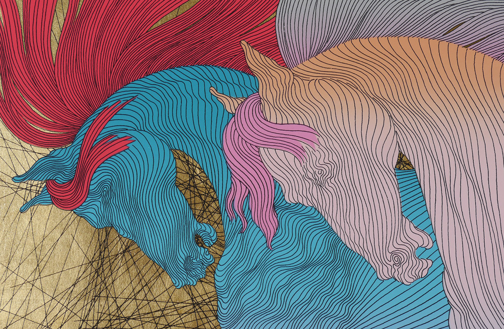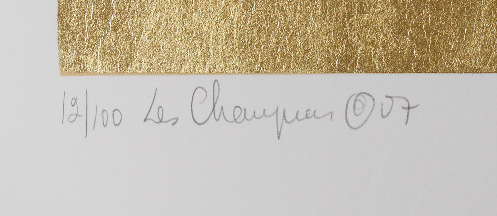 AZOULAY, Guillaume, (Israeli-American, 1949- ): ''Les Champions'', Screenprint with gold leaf, with a remarque in the lower margin, signed in pencil, numbered 12/100, image 28 1/2'' x 40'', full margins, with Certificate of Authenticity.