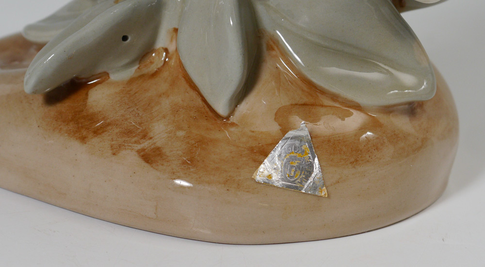CONDITION: Professional repair to flower on base of cockatoo and bottom front neck of crane.