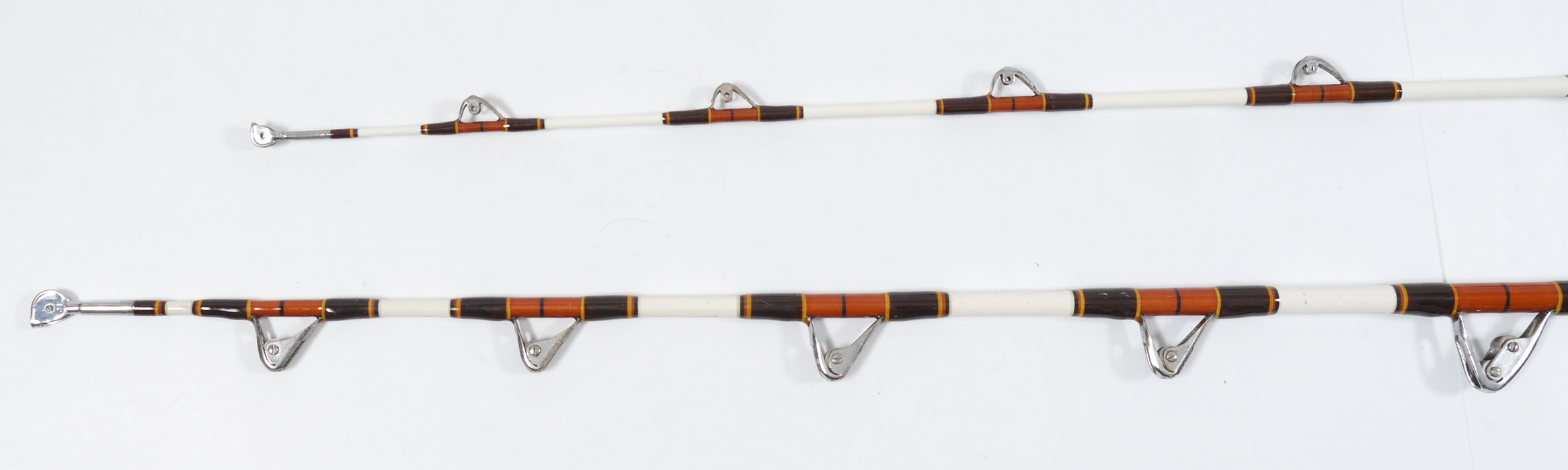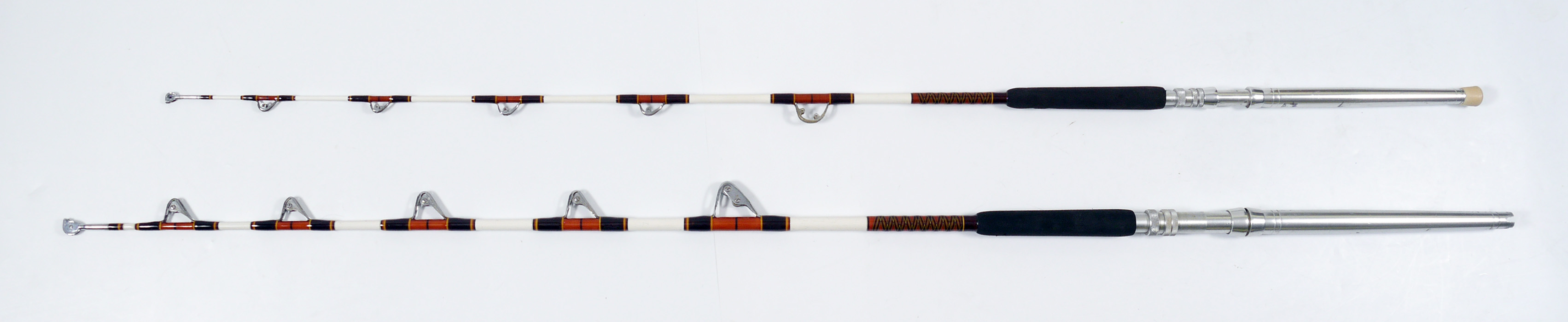2 BIG GAME SALTWATER FISHING REELS: To include; 1) Fenwick Rod w/Aftco Rollers, 7'4''; 2) Fenwick Rod, 6' 8''.