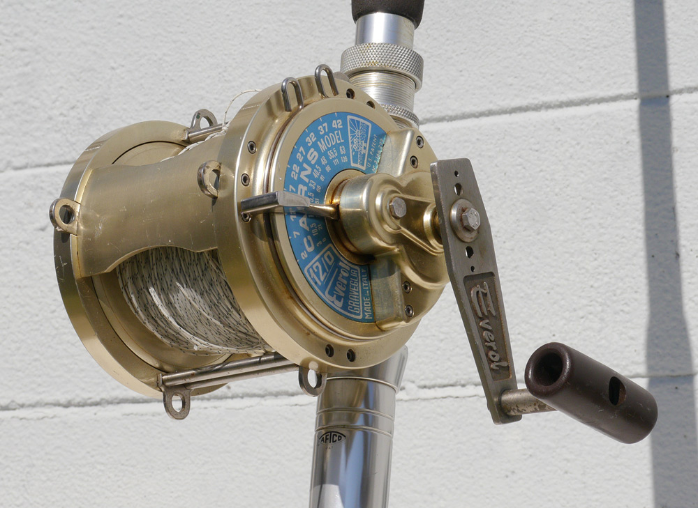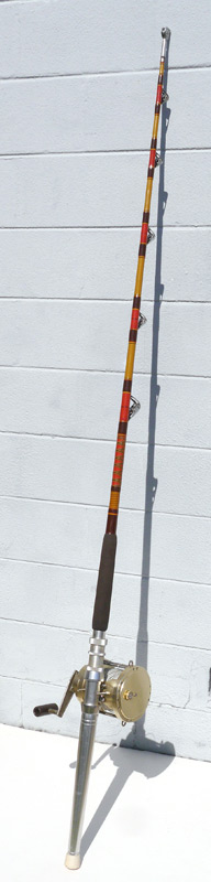 EVEROL CAIRNS 12/0 AUSTRALIA BIG GAME REEL & FENWICK ROD WITH AFTCO ROLLERS: 7' 3''