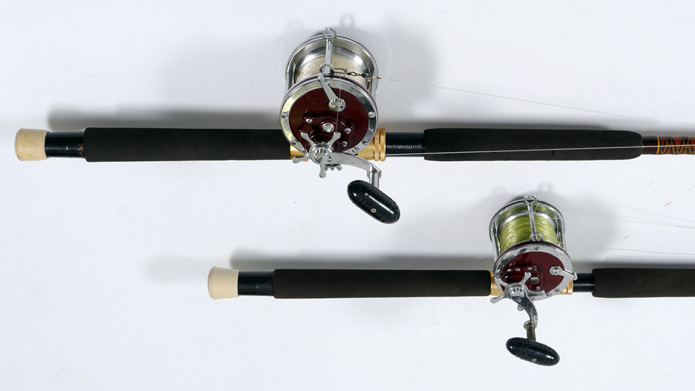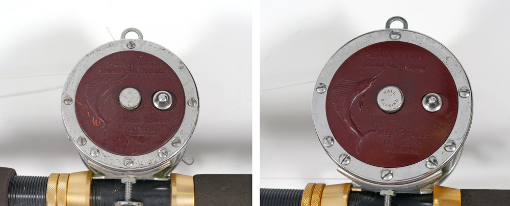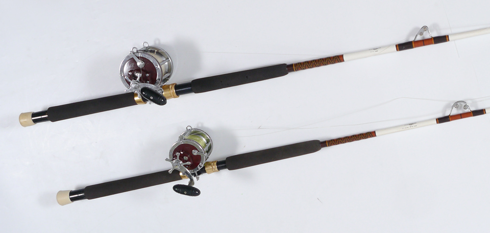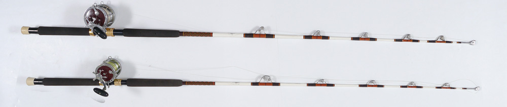 2 PENN SENATOR FISHING REELS & FENWICK RODS: 1) Penn 4/0 113-H Senator Fenwick Rod w/Aftco Guide; 2) Penn 6/0 114-H Senator Fenwick Rod w/Aftco Guides