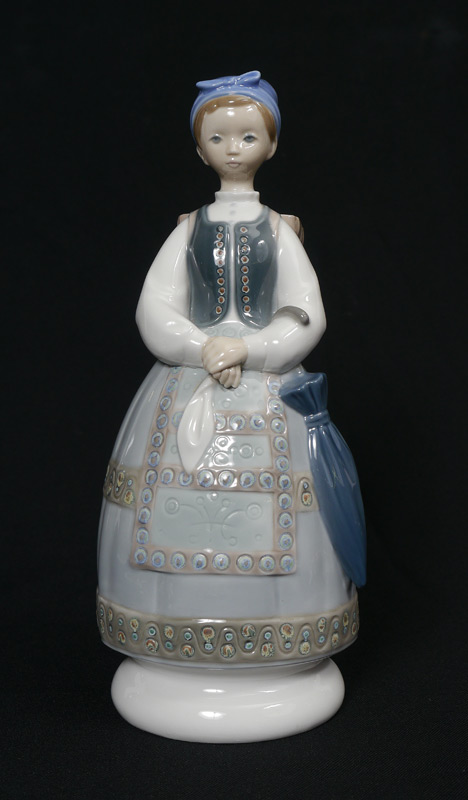 LLADRO PORCELAIN FIGURINE: Shepherdess with Traditional Dress #1158, Julio Fernandez sculptor, issued 1971 retired 1986, 11''h. x 5'' x 5''.