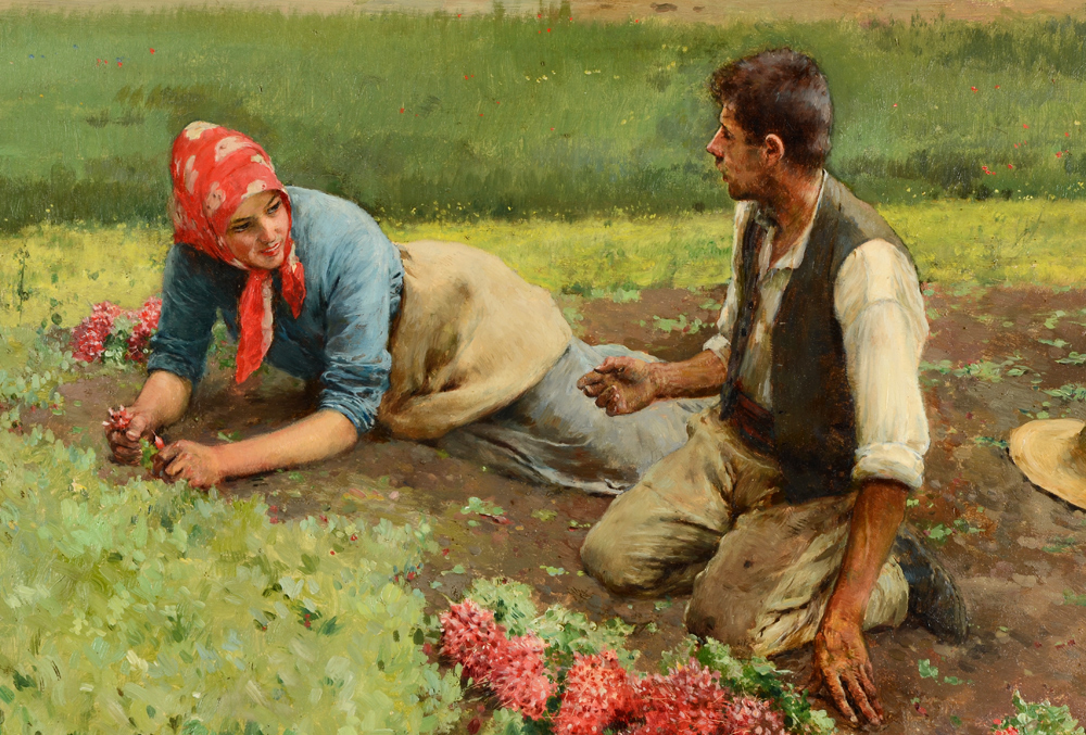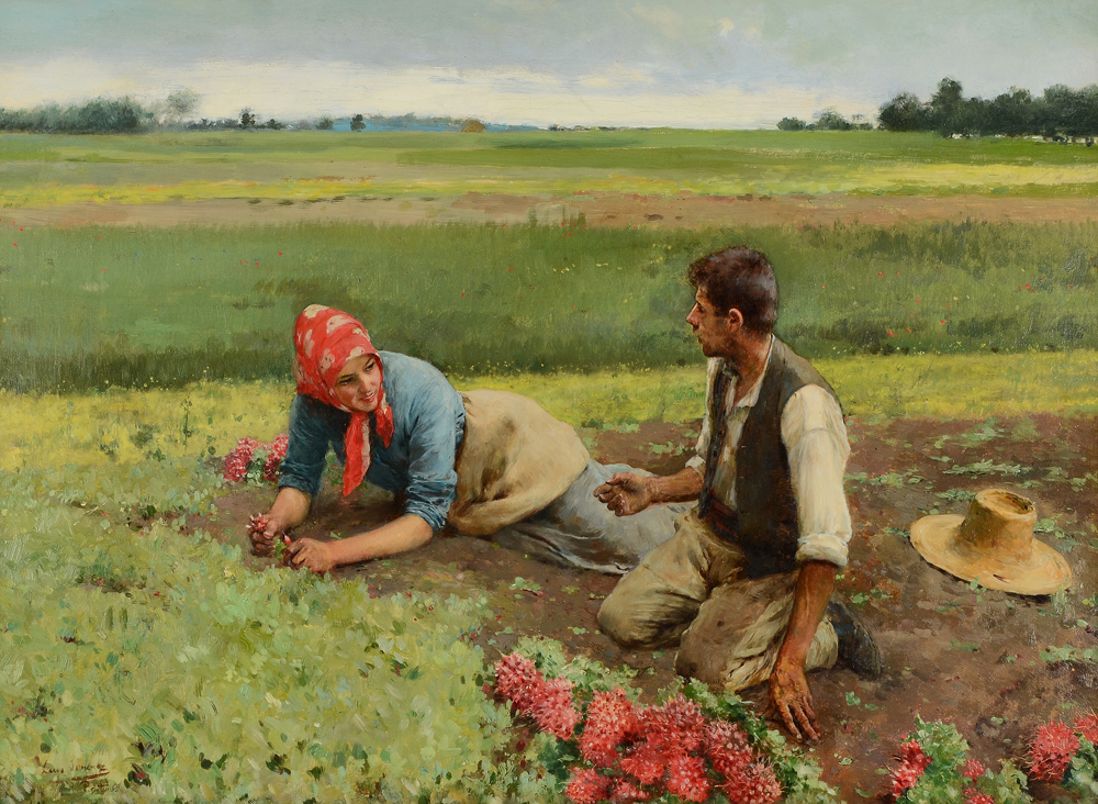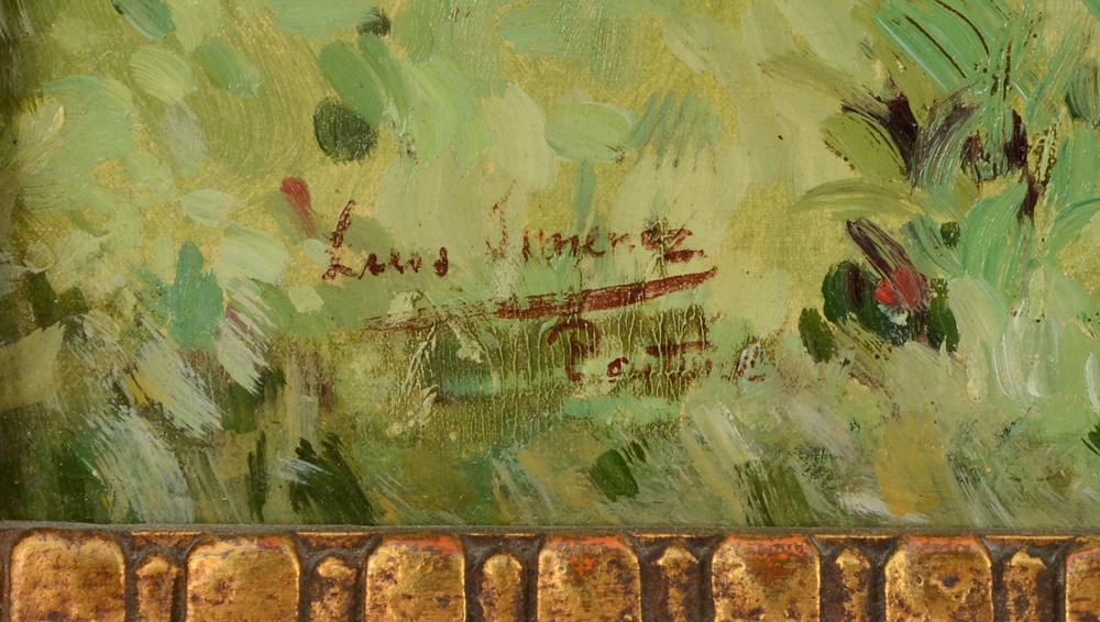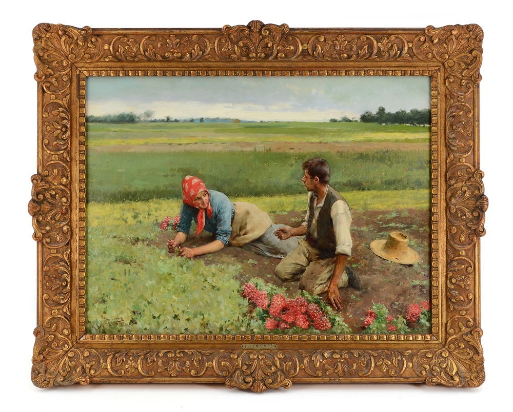 ARANDA, Luis Jimenez Y, (Spanish, 1845-1928): Radish Pickers, Pontoise France, Oil/Canvas/Board, 17 7/8'' x 24'', signed lower left Luis Jimenez, carved and gilded gesso period frame, 24 1/2'' x 30 1/2''.