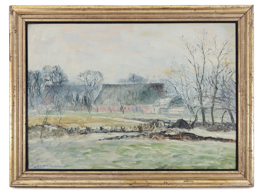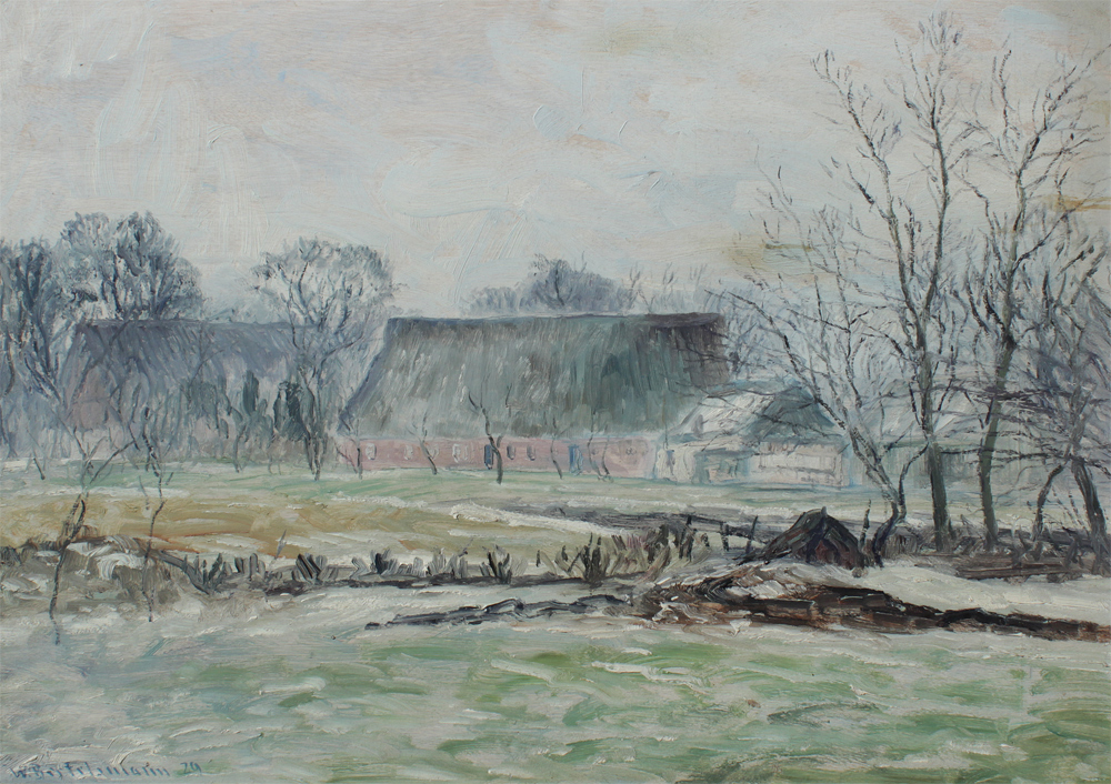 BERTELSMANN, Walter, (German, 1877-1963): Farmhouse Estate, Oil/Board, 19 1/4'' x 27 1/4'', signed lower left, dated '29, gilded frame 23 1/2'' x 31 1/2''.