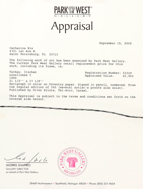 TARKAY, Itzchak, (Israeli, 1935-2012): ''Loneliness I'', Serigraph, sight size 23'' x 18 1/2'', signed lower right, numbered lower left 140/300, framed, 34 1/2'' x 30'', Park West COA verso.