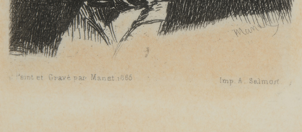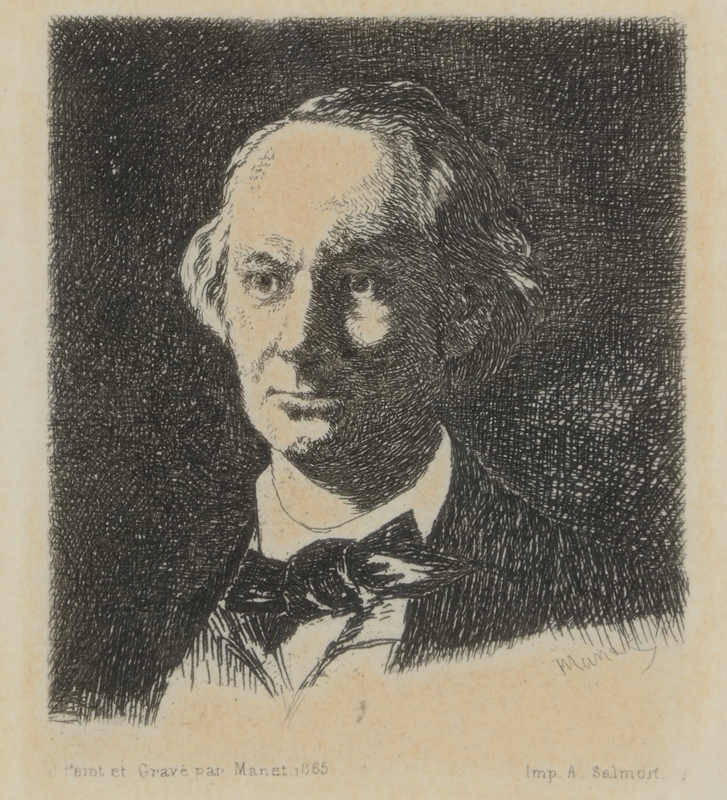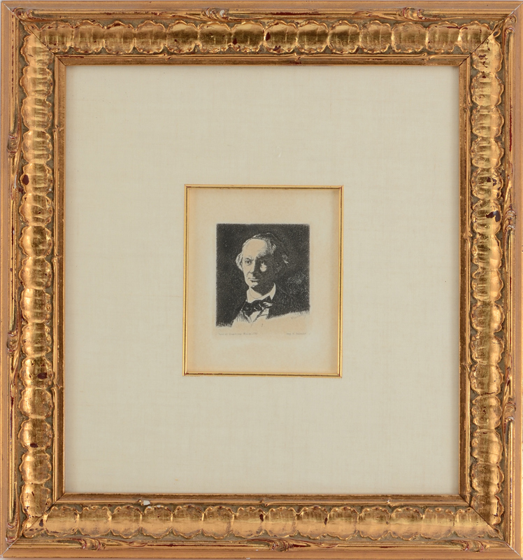 MANET, Edouard, (French, 1832-1883): Portrait of Baudelaire, Etching, Sight size 5 3/4'' x 4 3/4'', contemporary frame 17 1/2'' x 16 1/2''.