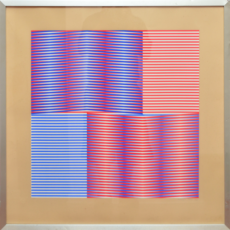CRUZ-DIEZ, Carlos, (Venezuelan, 1923): ''Induction Chromatique 1'', Color Screenprint, 30 1/2'' x 30 1/2'', pencil signed lower right, metal frame, 32'' x 32'', Denise Rene blind stamp lower left, pencil numbered 132/200.