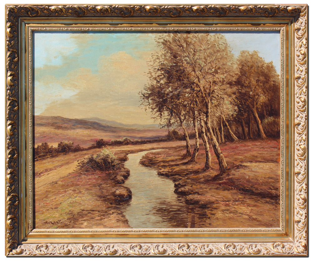 EUROPEAN RIVER LANDSCAPE SIGNED W. LENC: Oil/Canvas, 24'' x 30'', signed lower left, framed 30'' x 36''.