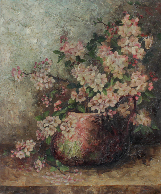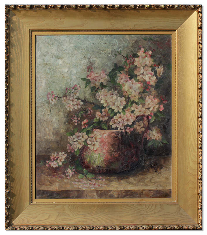 LARGE FLORAL STILL LIFE PAINTING SIGNED PECKHAM: Circa early 1900's, Oil/Canvas, 31'' x 26'', period gilded oak frame, 41 1/2'' x 36 3/4''.