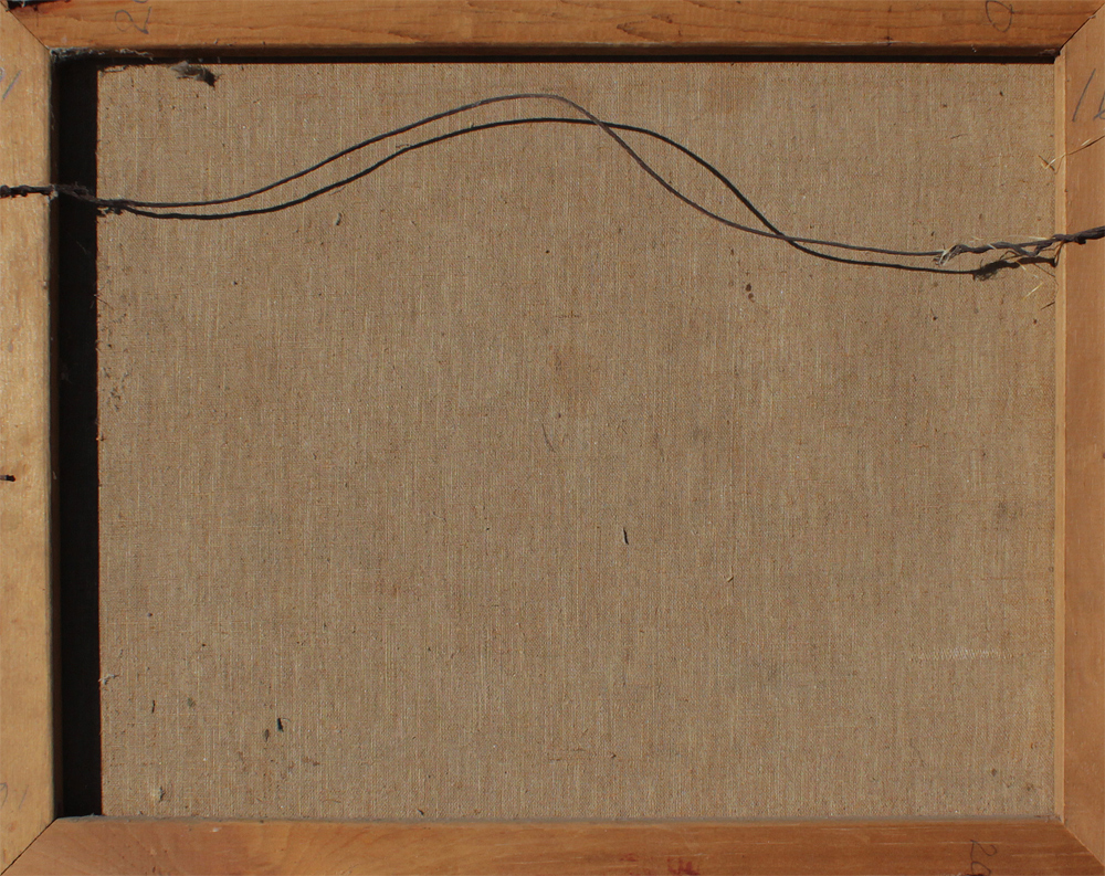 CONDITION: Several minor abrasions with flecks of paint loss in upper left corner, frame does show some wear.