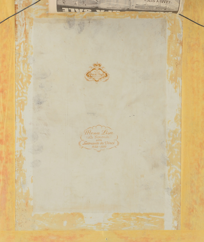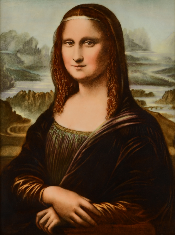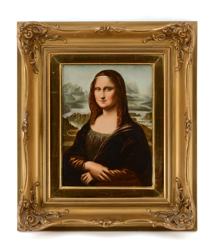 ROSENTHAL MONA LISA PORCELAIN WALL PLAQUE: After Leonard Ds Vinci's iconic painting, embellished transfer, marked verso with Rosenthal mark, ''Mona Lisa, La Gioconda von Leonardo Da Vinci, 1452-1519''. Plaque measures 12 1/2'' x 10 1/4'', carved gilt frame, 19 3/4'' x 17 1/4'' x 3 1/2''.