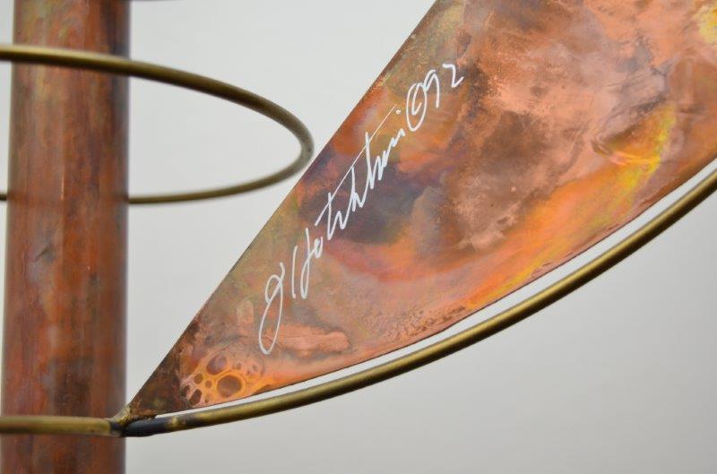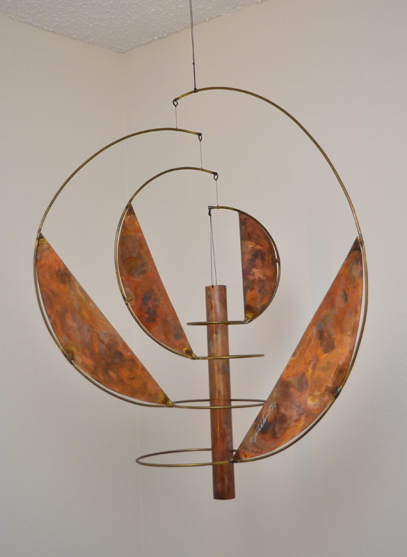 ARTIST SIGNED COPPER MOBILE: Illegibly signed and dated '92, measures approx. 25'' h. x 19''.