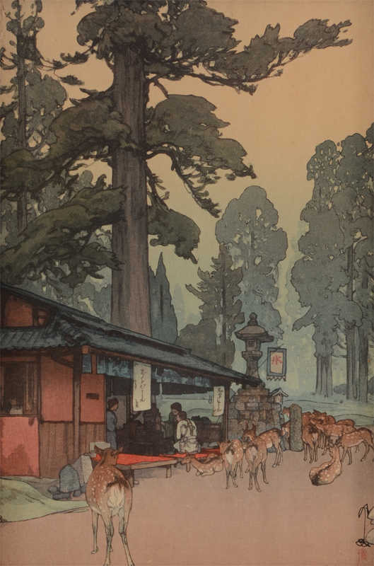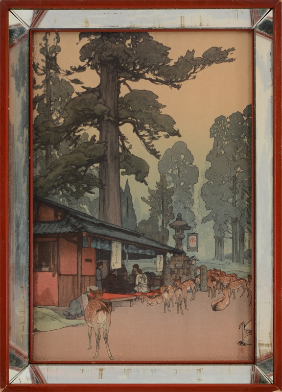 HIROSHI YOSHIDA WOODBLOCK: ''Way to Kasuga Shrine'', sight size 14 1/4'' x 9 1/2'', custom painted frame, 17'' x 12 1/4''.