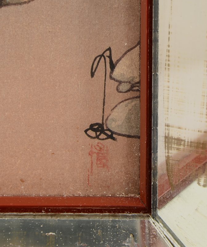 CONDITION: Not examined out of the frame, trimmed margins, frame shows wear, sold as is.