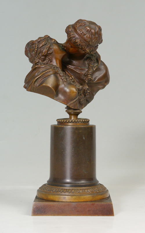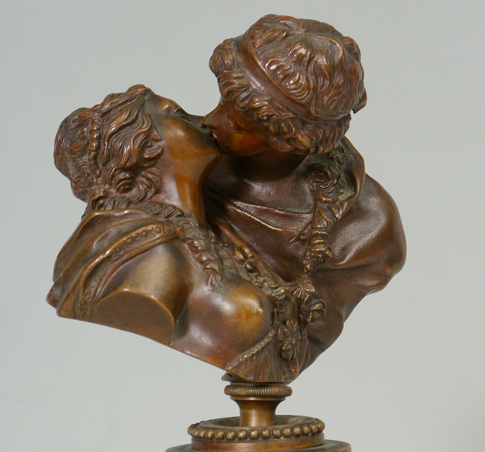 LOVERS KISS BRONZE: Overall 8''h. x 4.5'' x 4.5''.