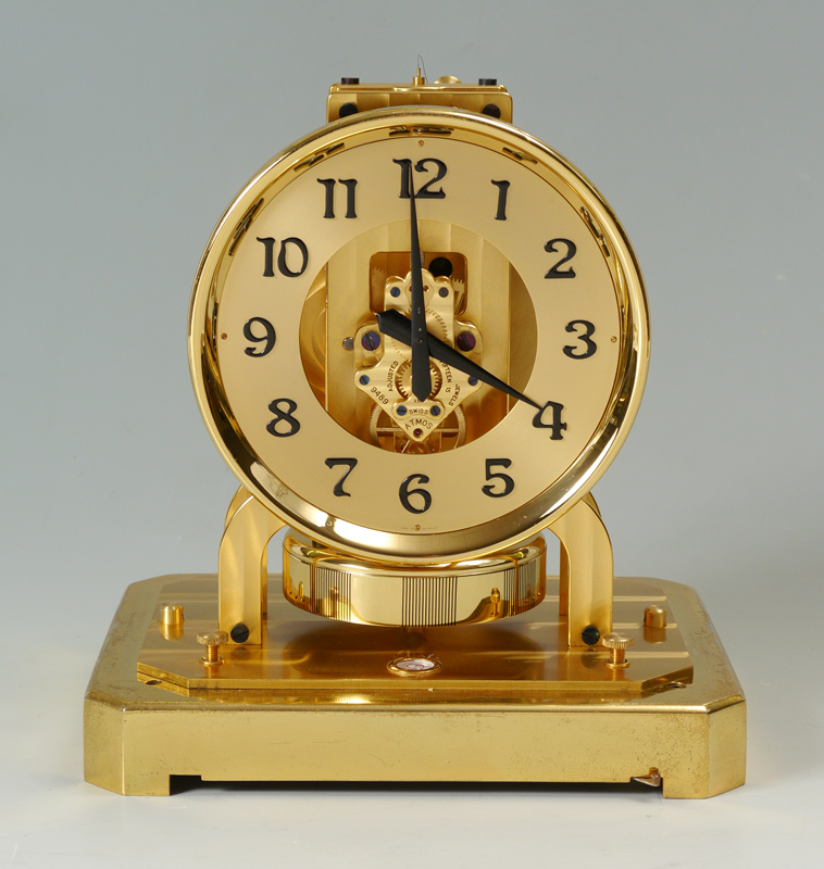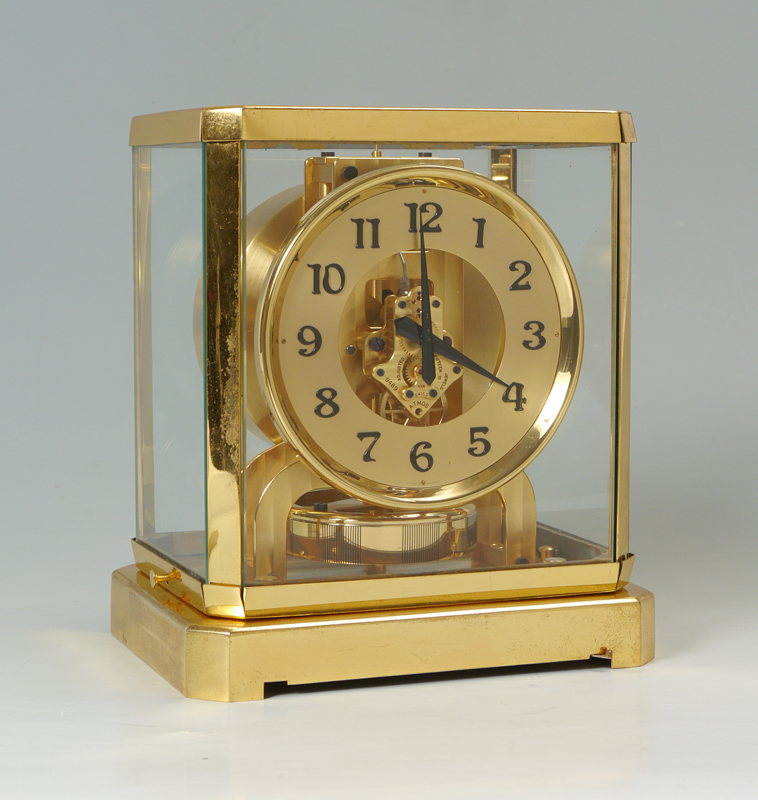 EARLY 1940'S LECOULTRE ATMOS II CLOCK: Serial number 10507, dates to early 1940's. Brass case, glass sides and top. Measures 9 1/4'' h. x 8 1/4'' x 6 1/4''.