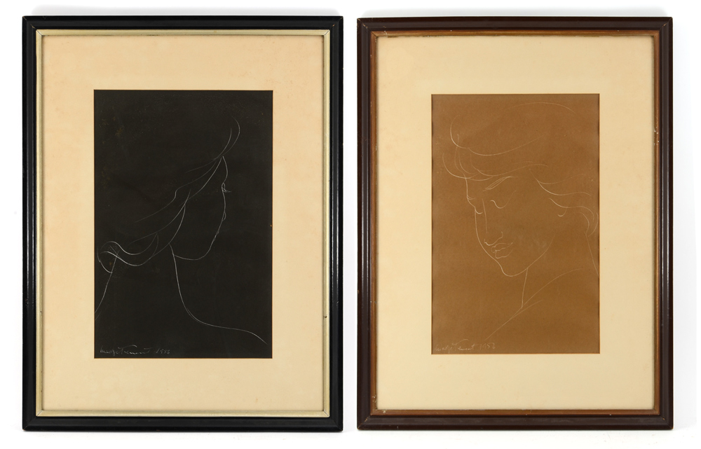TENNENT, Madge, (American, 1889-1972): 2 Drawings of Profiles of Women, sight size 17 1/4'' x 11 1/2'', signed lower left and dated 1956, framed, 27 1/4'' x 21''.