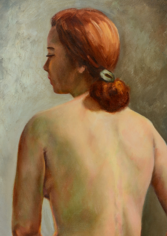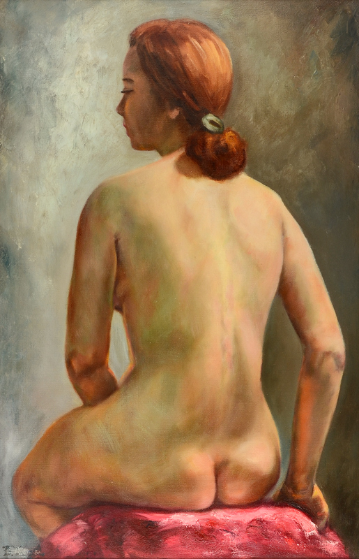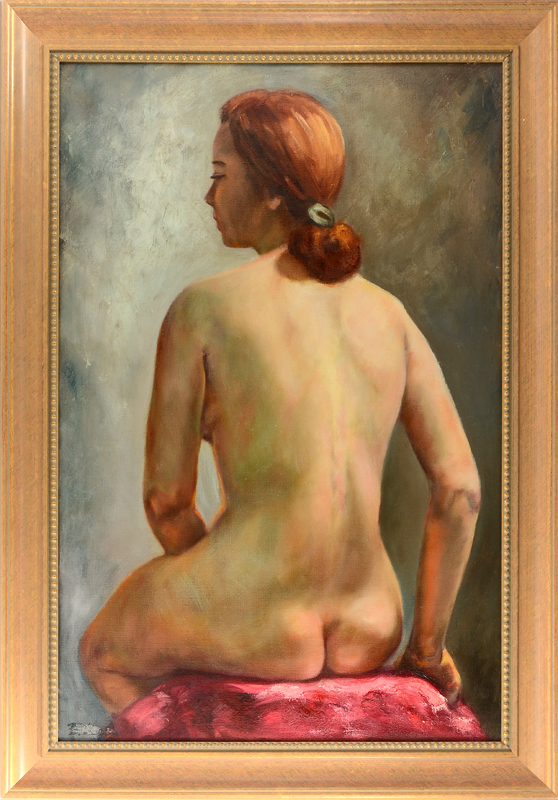 PAINTING OF A NUDE WOMAN ILLEGIBLY SIGNED: Oil/Canvas, 36'' x 24'', signed lower left B. Vogel, canvas circa 1940's, newer frame, 42'' x 30''.
