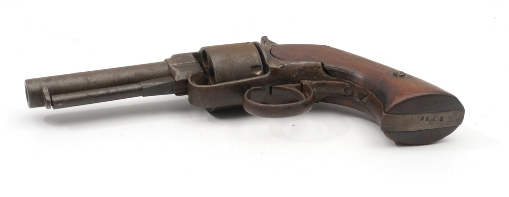 ANTIQUE JAMES WARNER POCKET REVOLVER: Serial number 1356, 5 shot, .30 caliber 3'' barrel, cylinder marked Warners Patent 1857, walnut grips. Action currently working, overall 6 1/2''.