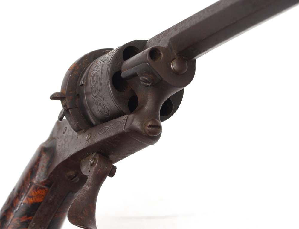 CONDITION: Missing screw and ejector rod, repair to grip. BURCHARD GALLERIES DOES NOT ENDORSE THE FIRING OF ANY ANTIQUE FIREARM.