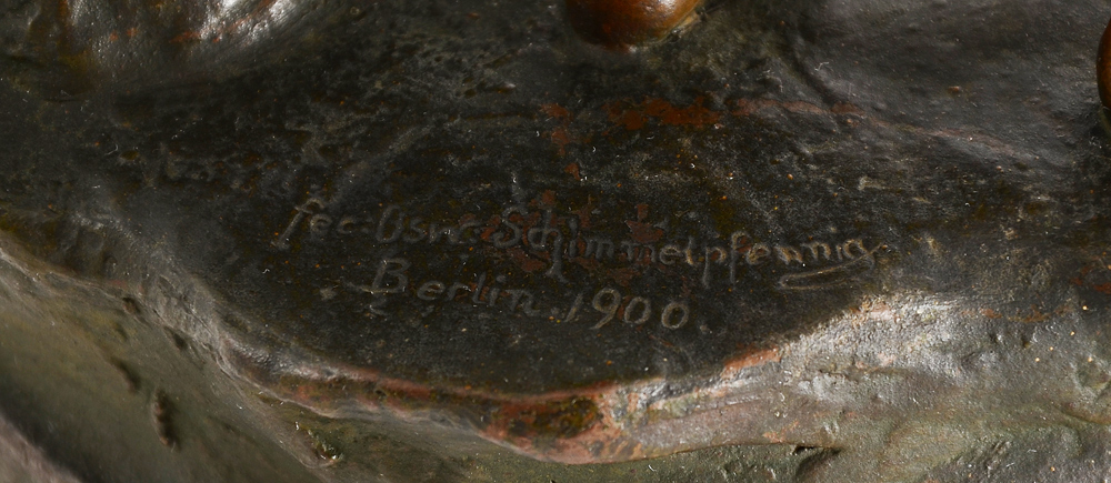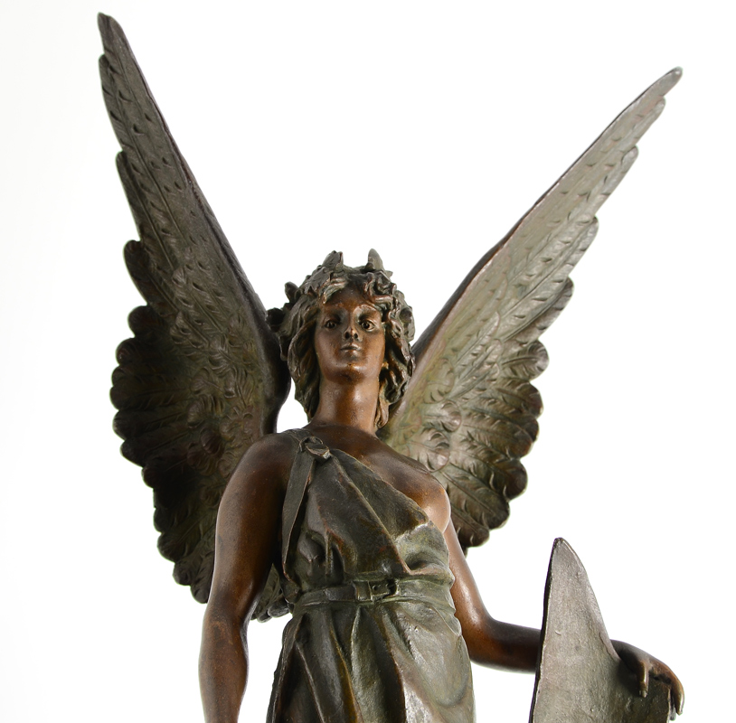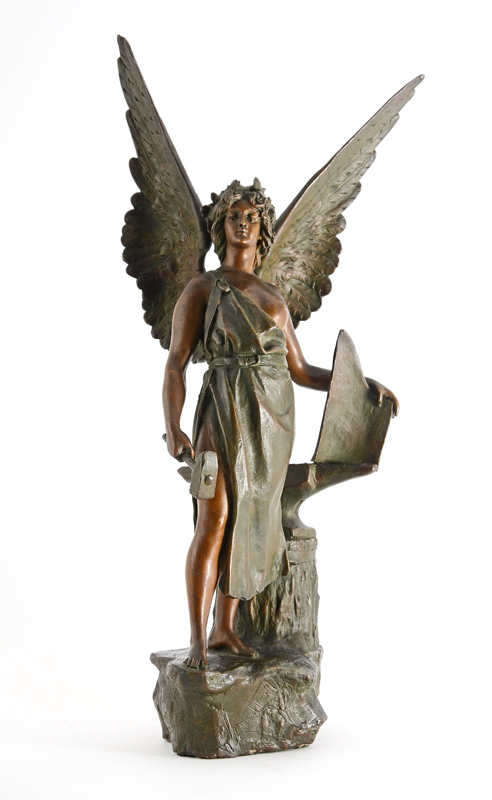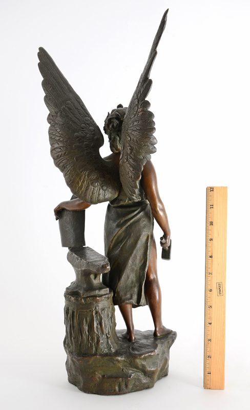 COLD PAINTED SPELTER SCULPTURE OF WINGED JUSTICE: 21'' h., signed on base, dated 1900, Berlin.