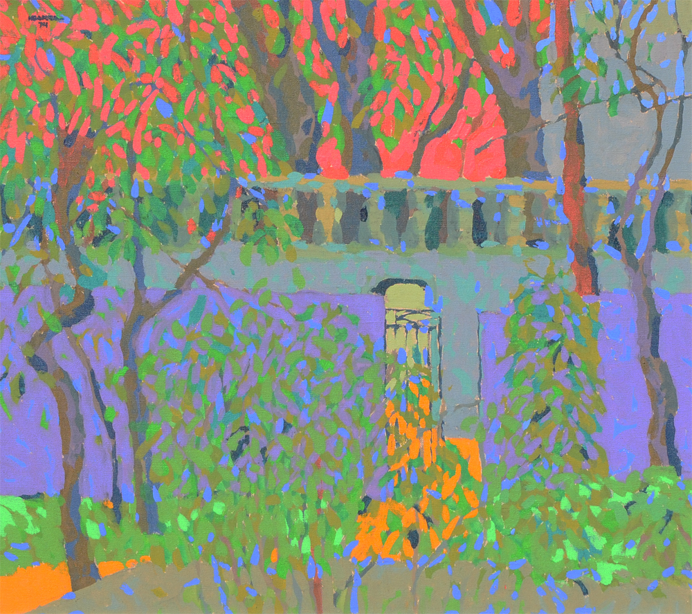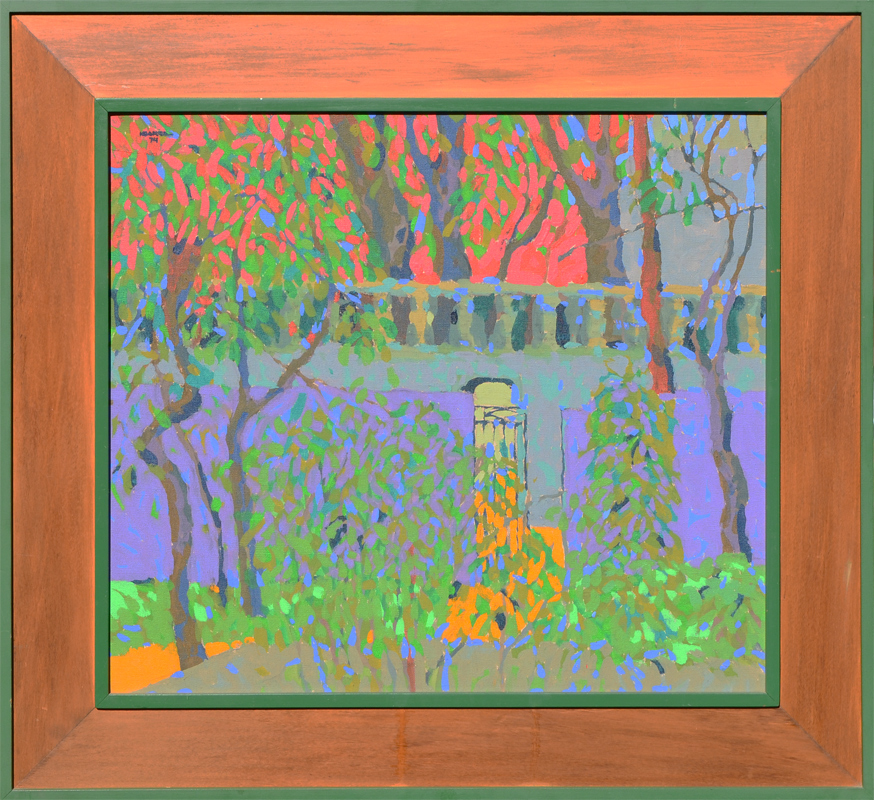 DE LA ROSA, Ibarra, (Filipino, 1943-1997): Impressionist Landscape with Wall and Gate, Oil/Canvas, 20'' x 23'', signed upper left and dated '74, custom painted frame 27 1/2'' x 30 1/4''.