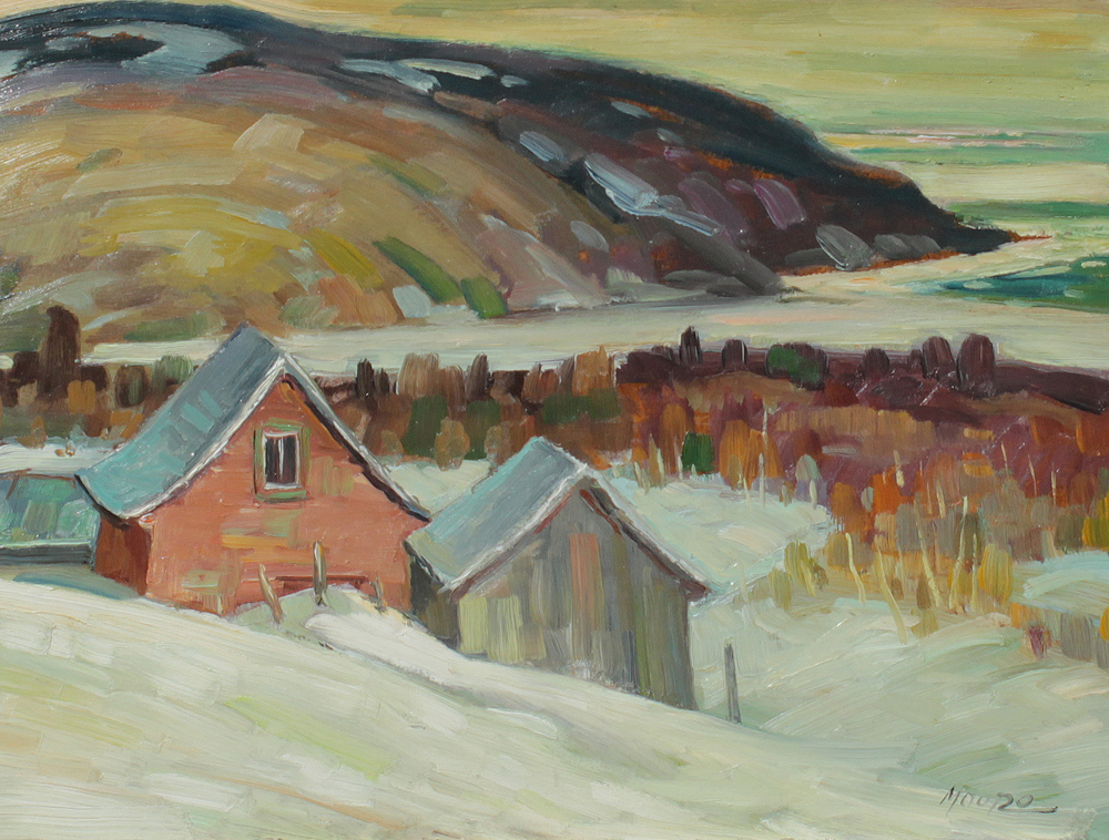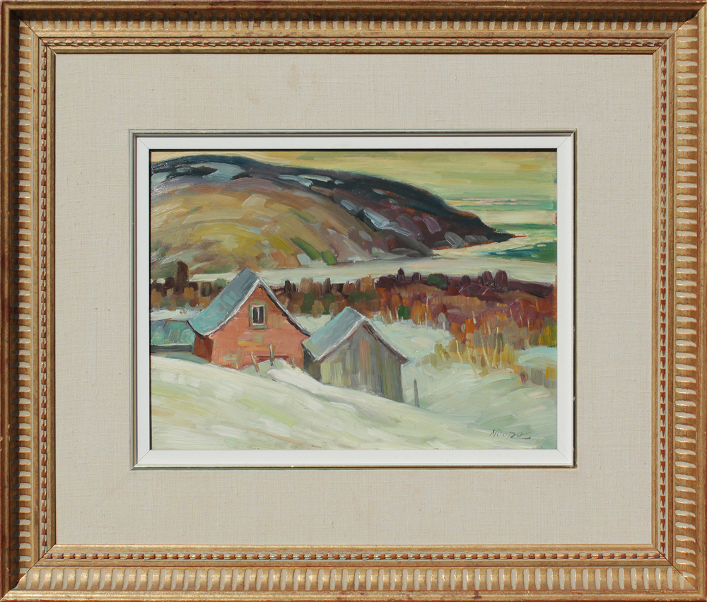 MAURO, Mario, (Italian-Canadian, 1920-1984): Canadian Snow Landscape, ''Cap au Corbe en St. Paul'', 1976, Oil/Masonite, 12'' x 16'', signed lower right, signed titled and dated verso, framed, 24 1/2'' x 26 1/2''.