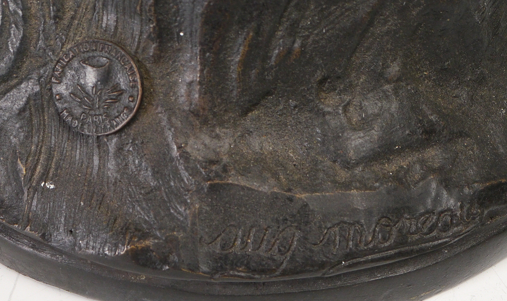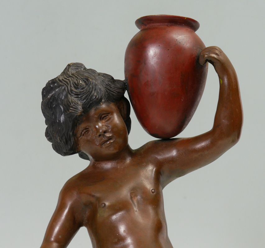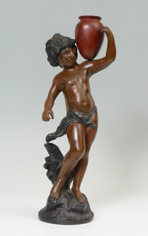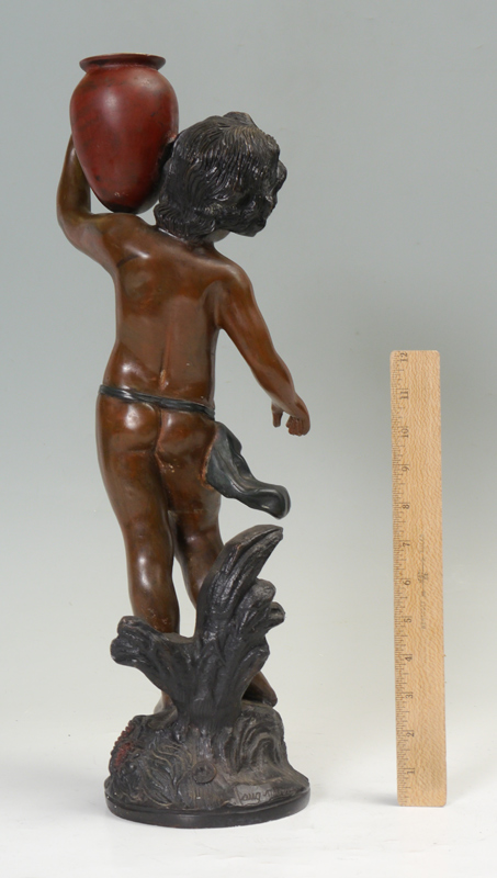 BRONZE SCULPTURE BOY WITH URN AFTER MOREAU: 20 1/2'' h., signed, 20th C. casting.