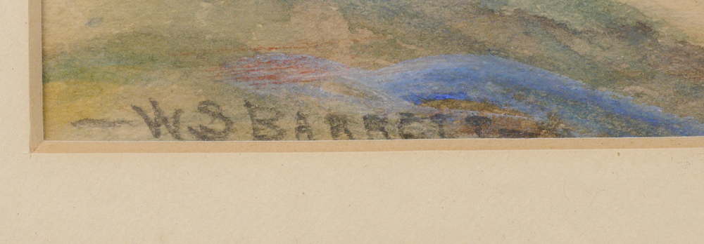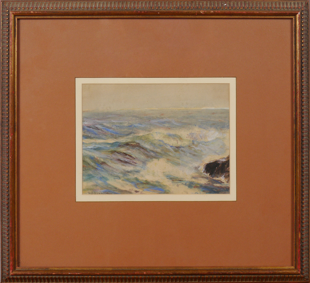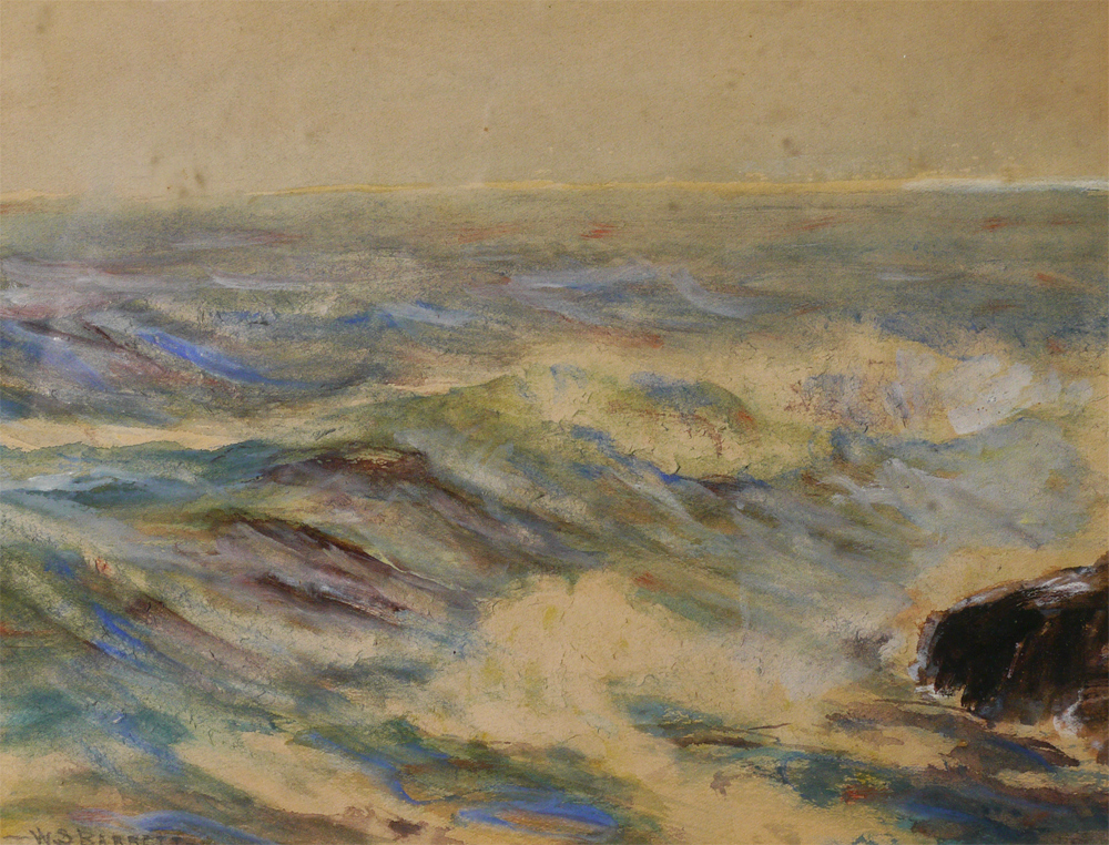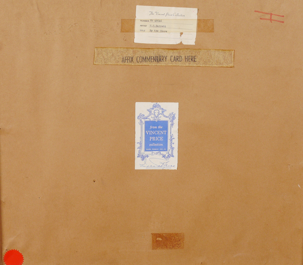 BARRETT, William Sterna, (American, 1854-1927): ''By the Shore'', Coastal Seascape, Watercolor/Gouache, Sight size 7'' x 9 1/2'', signed lower left, framed 18 3/4'' x 21'', Vincent Price Collection label affixed verso with title.