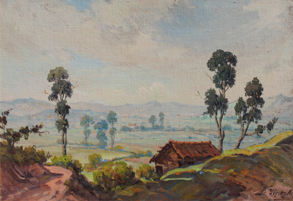 ARTEAGA, Jose Yepez, (Ecuadorian, 1898- ): Panoramic South American Landscape, 14 1/2'' x 21'', signed lower left, framed 24'' x 30 1/4''.
