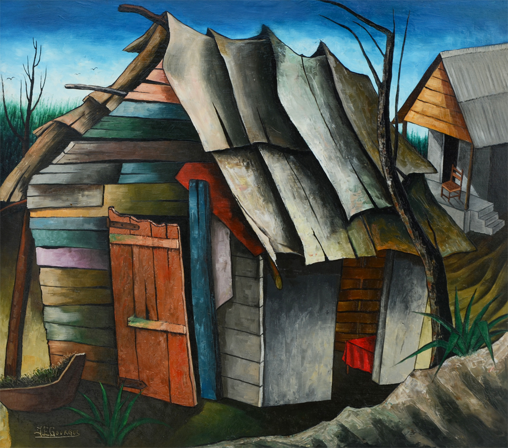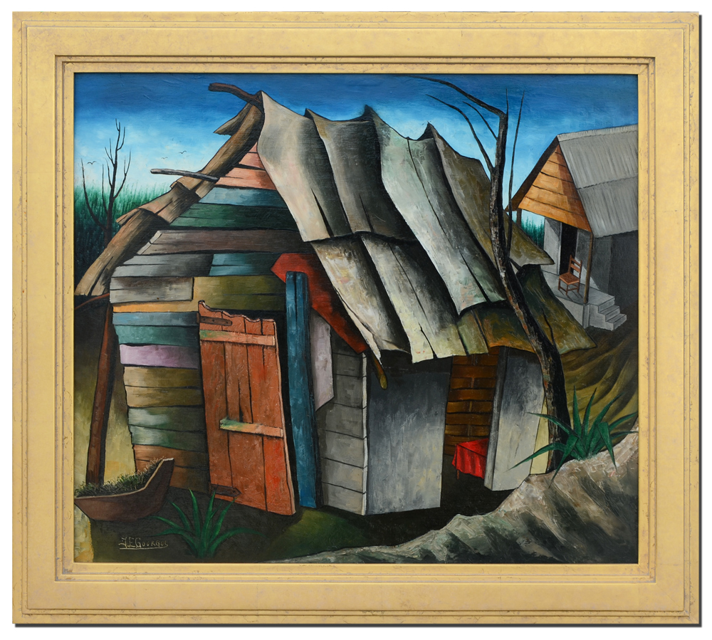GOURGUE, Jacques Enguerrand, (Haitian, 1930-1996): Haitian Shacks, Oil/Masonite, Sight size 19 3/4'' x 22 1/2'', signed lower left, fine contemporary framing 24 1/2'' x 27 3/4''.