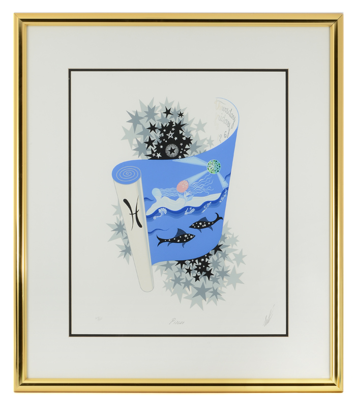 ERTE PISCES SERIGRAPH: Sight size 21 3/4'' x 17 3/4'', pencil signed lower right, titled in the lower margin, #'d 164/350, fine framing 32'' x 27 1/2''.