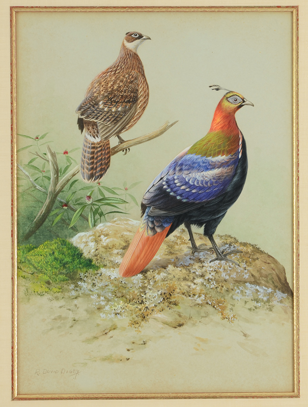 DIGBY, David, (British, 1936- ): ''Pair of Himalayan Monal'', Watercolor and Gouache, sight size 12 1/2'' x 9 1/4'', signed lower left, framed, 22'' x 18 1/2''.