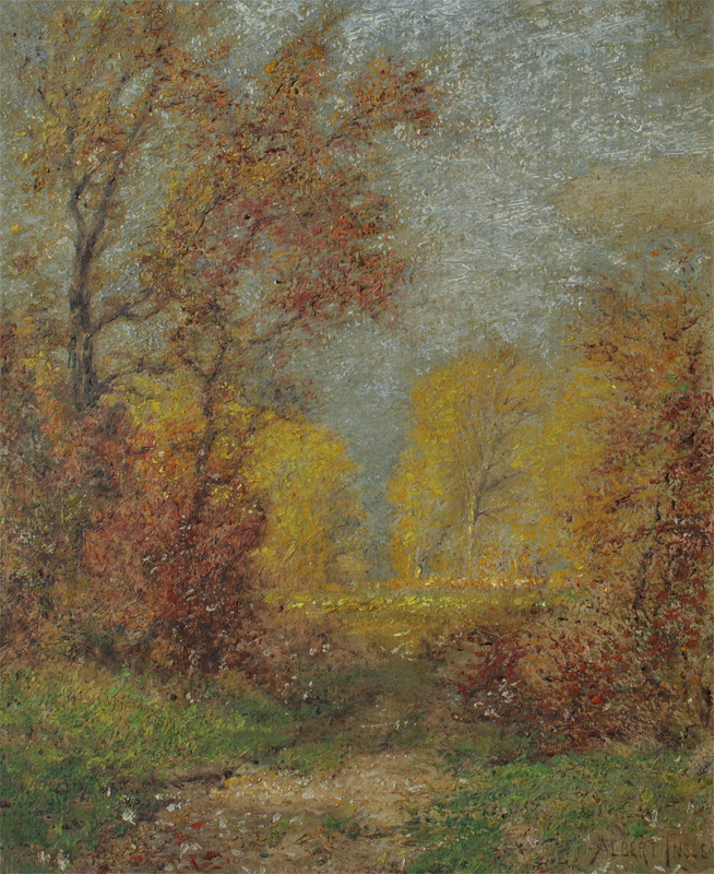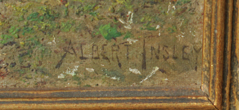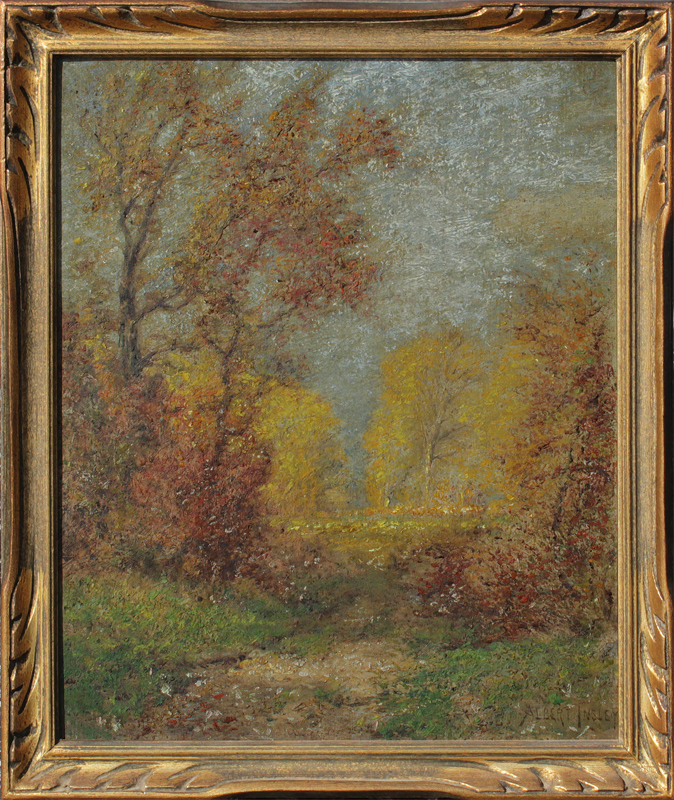 INSLEY, Albert Babb, (American, 1842-1937): Autumnal Landscape with Path, Oil/Board, 12'' x 10'', signed lower right, period carved and gilded frame 13 1/2'' x 11 1/2''.