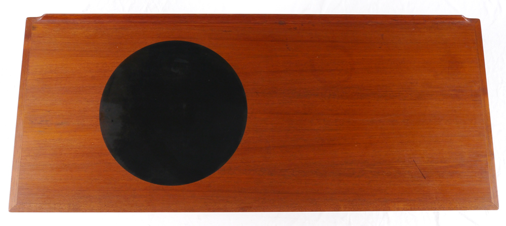 AMRONLITE CASED GREEN SHADE DESK LAMP: Heavy cast metal base, single socket fixture. Molded green cased glass shade marked Amronlite, Pat. 1917, Made in USA. Overall measures 11 1/2'' h. x 11 1/4'' x 9 1/2'' with shade on.