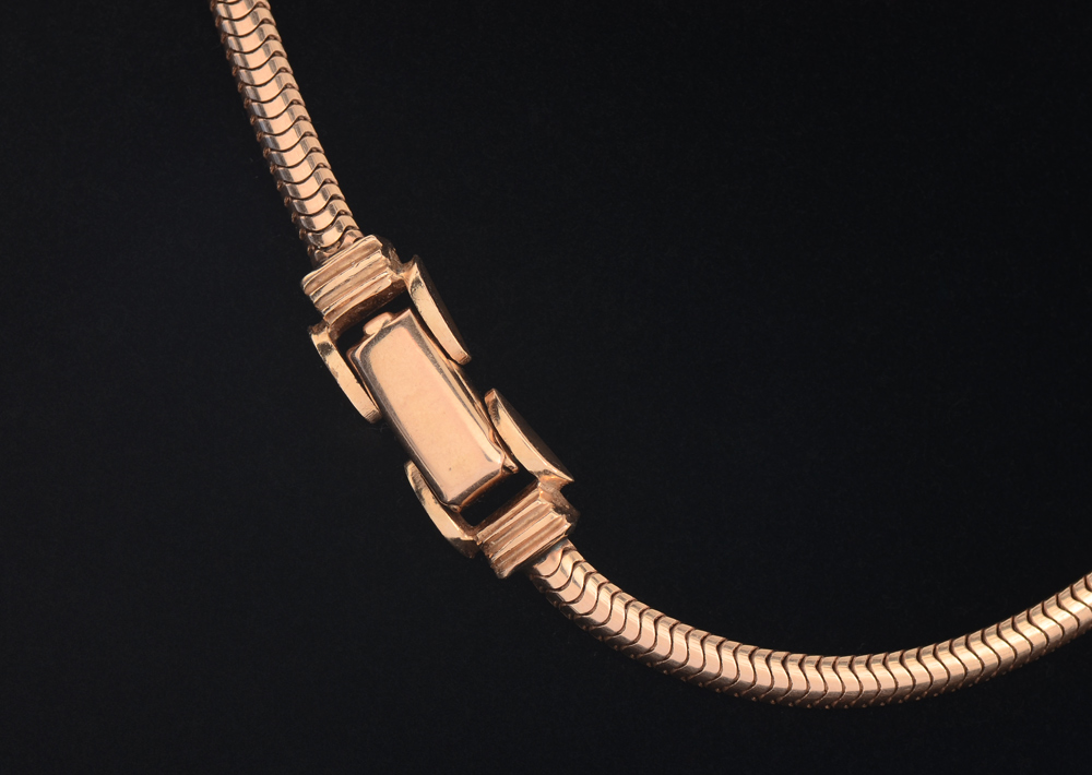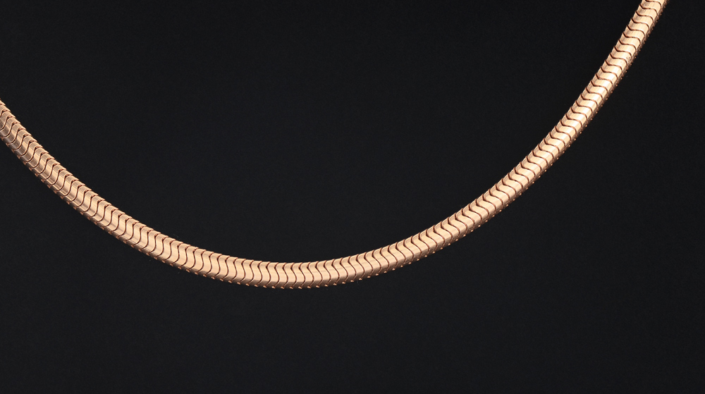 ART DECO ROSE GOLD SNAKE CHAIN: 14K gold, 16'' chain with bold Deco clasp.
