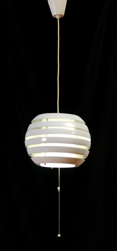 CARL THORE SWEDISH MODERN PENDANT LAMP: Hanging lamp by designer Carl Thore, white enameled metal. 9'' h. x 12'' diameter