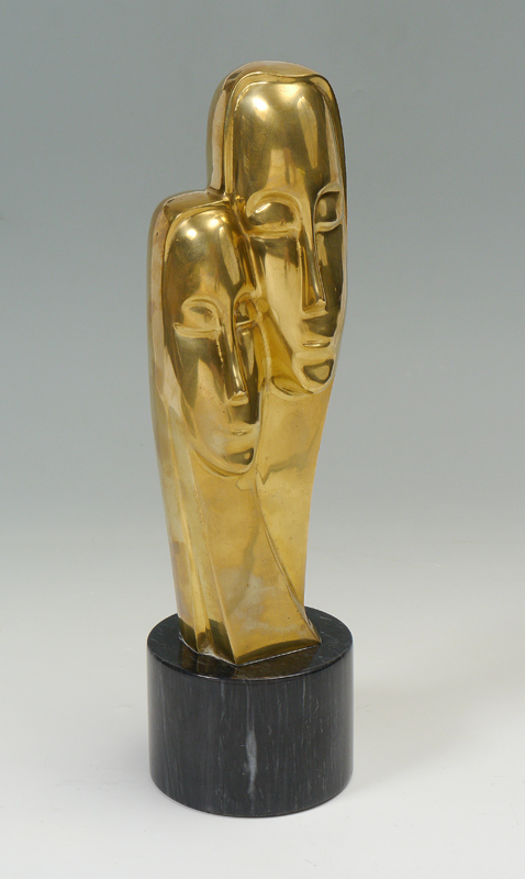 MODERNIST POLISHED BRONZE SCULPTURE: 10 1/2'' h., affixed to a cylindrical polished marble base, 13 1/4'' overall, no visible signature.