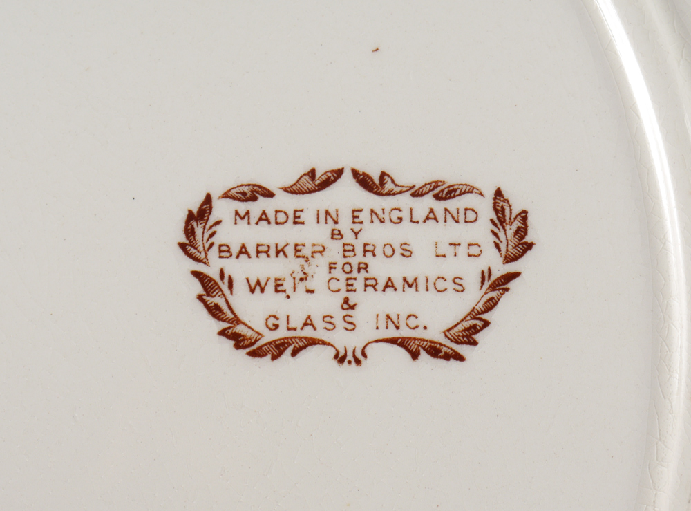 BARKER BROTHERS TURKEY PLATTER & 12 PLATES: Old English earthenware 20'' platter and 12 plates, 11''. Transfer design of turkey framed by a border of autumn harvest.