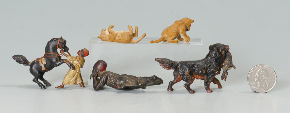 MINIATURE PLIQUE-A-JOUR TEA SET: 6 pieces total, miniature or doll sized tea set with floral and fish scale motifs to include teapot 2'' h. x 3'', 4 cups, serving tray 4 1/2'' dia.