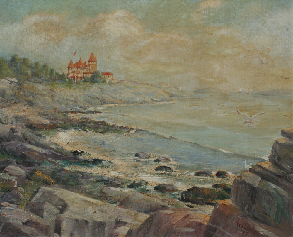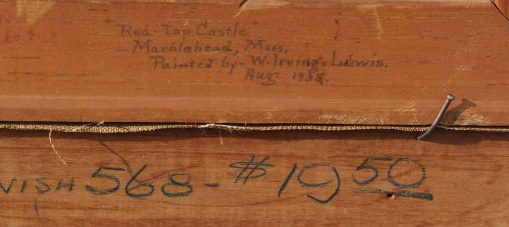 LEWIS, W. Irving, (American, 20th C.): ''Red-Top Castle'', Marblehead, Mass, Oil/Canvas, 16'' x 20'', encased in gilded and carved Newcomb and Macklin frame 20 1/4'' x 24''.