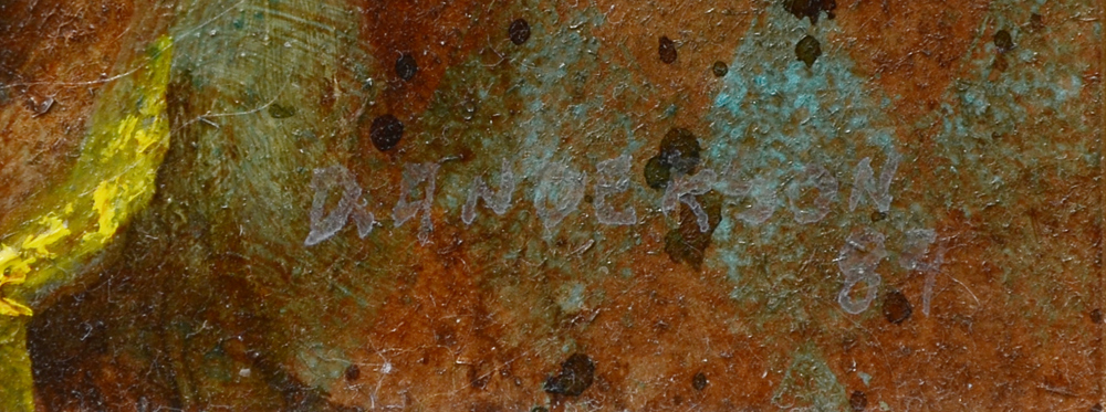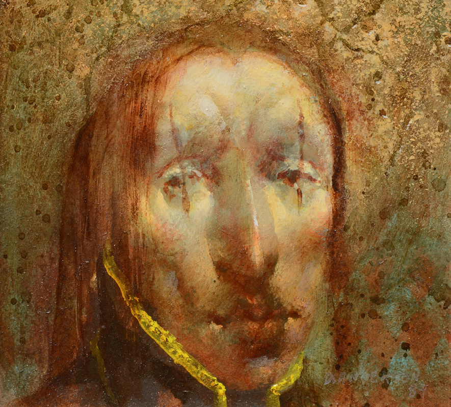 ANDERSON, David, (American, 1926-1996): Portrait Painting of a Surreal Clown Face, Oil/Board, Sight size 5 3/4'' x 6 1/4'', faintly signed lower right, framed 15'' x 15 1/4''.
