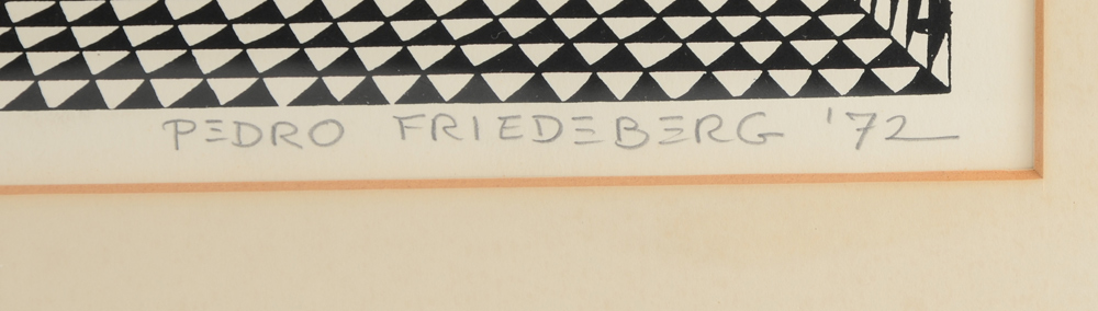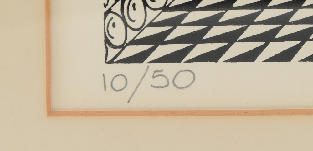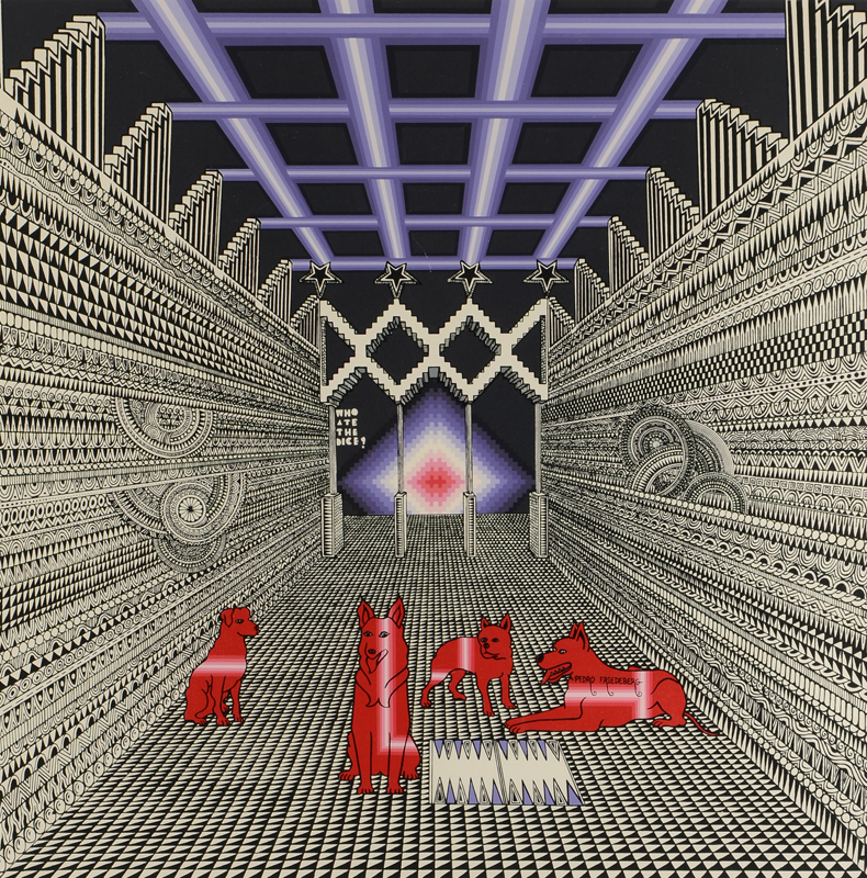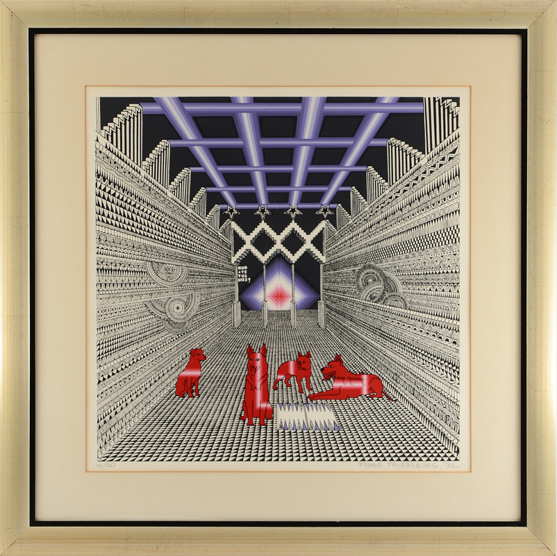 FRIEDEBERG, Pedro, (Mexican-Italian, 1936- ): Op Art Composition with Wolves & Dogs, Silk Screen, image size 20 1/2'' x 20 1/2'', pencil signed lower right, dated '72, #'d lower left 10/50, framed 30'' x 30''.
