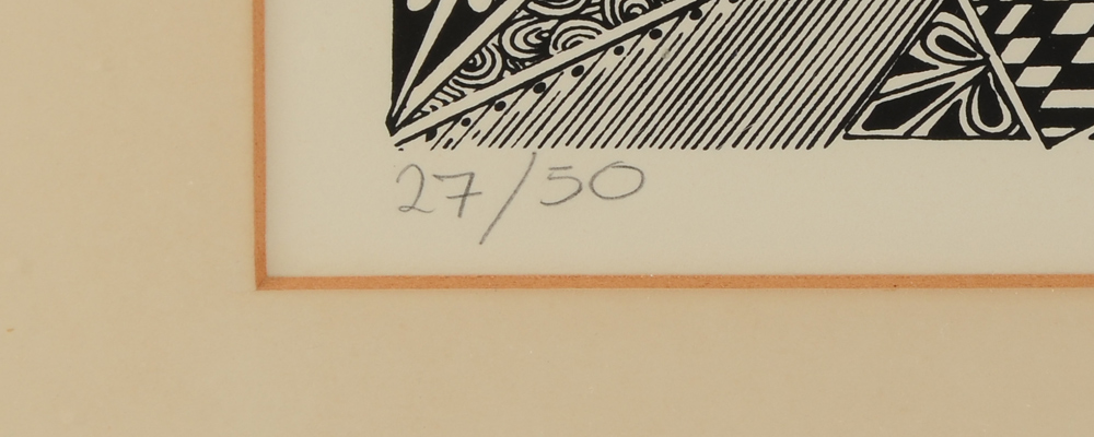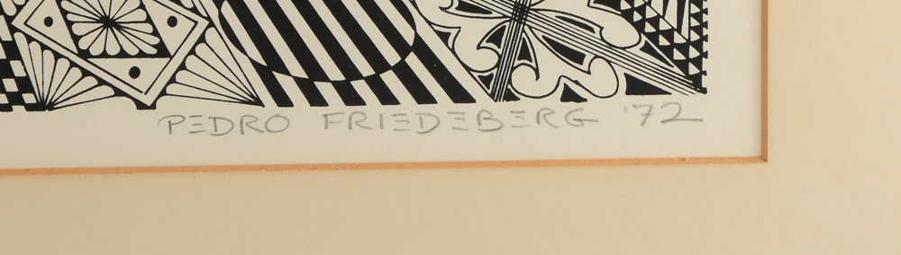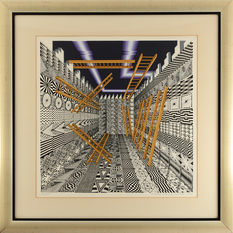 FRIEDEBERG, Pedro, (Mexican-Italian, 1936- ): Op Art Composition with Ladders, Silk Screen, image size 20 1/2'' x 20 1/2'', pencil signed lower right, dated '72, #'d 27/50 lower left, framed 30'' x 30''.