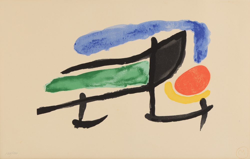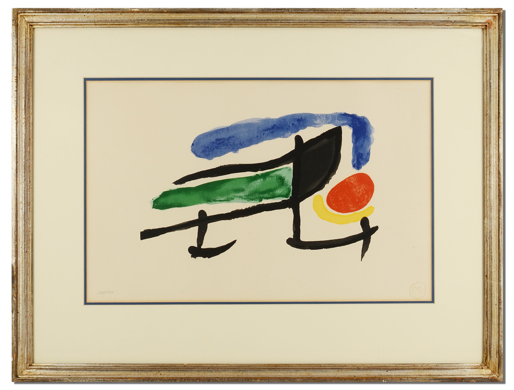 MIRO, Joan, (Spain, 1893-1983): ''Miro el Tapis de Tarragona'', Color Lithograph, 14 3/4'' x 21 3/4'', signed in the plate lower right, #'d 123/200 lower left, Sala Gapar Blind Stamp lower right, framed 23'' x 29 3/4''.